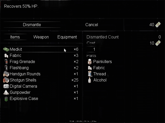 Players can dismantle junk and unused equipment to salvage materials, which can then be used to craft useful items, weapons, and gear